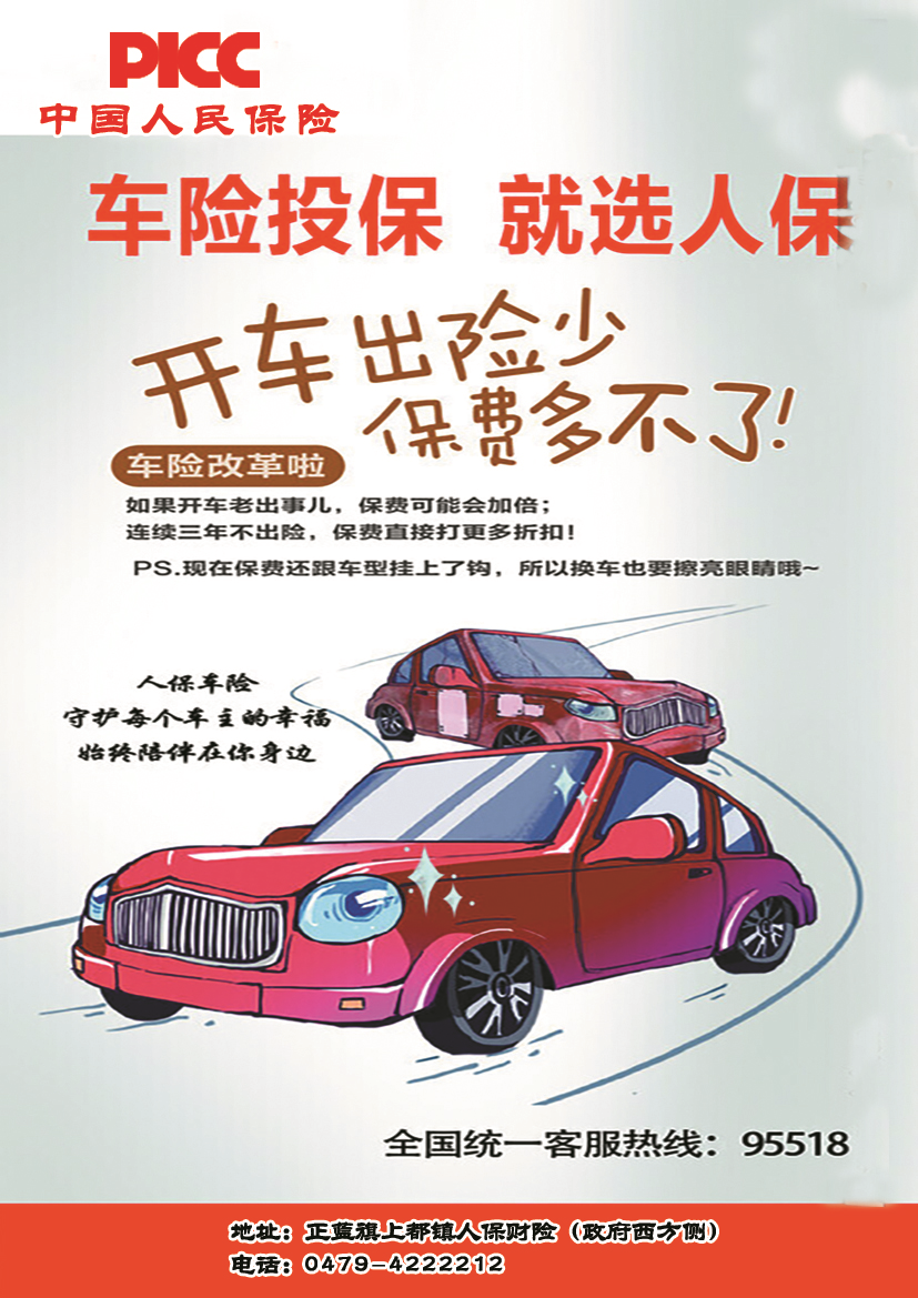 在繁忙的都市生活中,每一次出行都承载着人们对生活的期待与追求。当下时刻,车险不仅是生活所需,更是健康优选!中国人保,作为国内领先的保险公司,始终秉持着“以人为本”的服务理念,为广大车主提供全面的车险保障。我们承诺:保费透明无套路,理赔快速更省心,出险只需要一个电话,专业团队全程协助,极速到帐不拖延。 地址:内蒙古锡盟正蓝旗上都镇政府西侧人保财险 电话:0479-4222212 文章导航 车险投保,就选人保——人保车险正蓝旗支公司,您的行车守护者